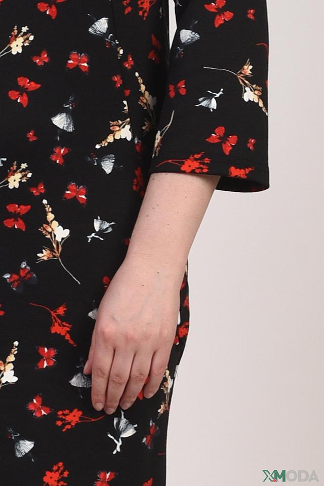 Это стильное платье от бренда Pezzo станет прекрасным дополнением вашего гардероба. Основной цвет платья – чёрный, который служит идеальным фоном для яркого цветочного принта, состоящего из красных, белых и зелёных цветов.