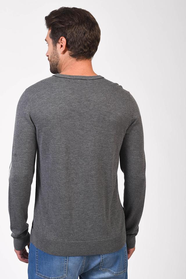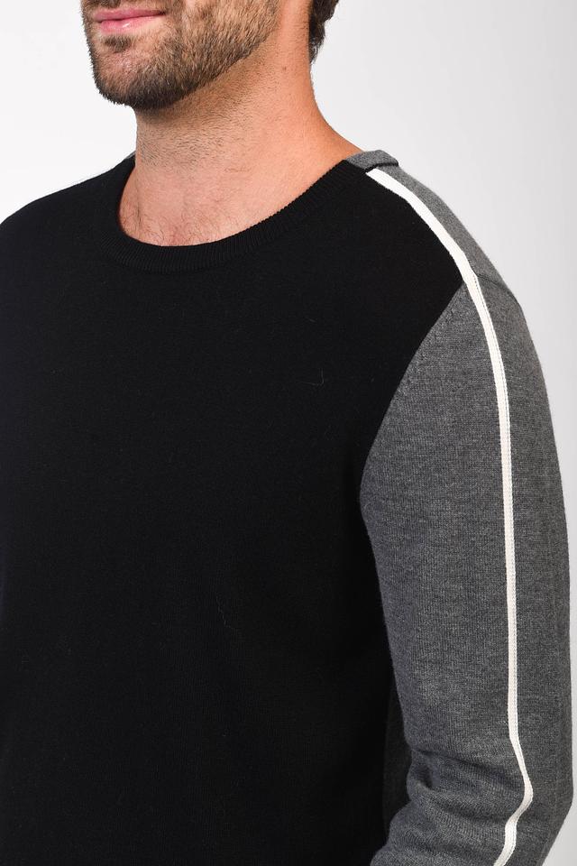 Мужской джемпер Pezzo серого и черного цвета с контрастной полосой на рукавах. Изготовлен из мягкой вискозы с добавлением шерсти и полиамида для комфорта и долговечности. Состав: вискоза 55%, шерсть 23%, полиамид 22%