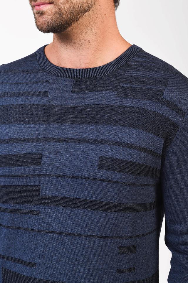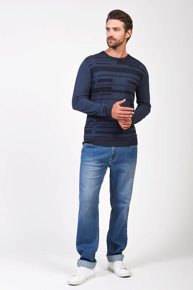 Мужской джемпер Pezzo синего цвета с геометрическим узором станет отличным дополнением к вашему гардеробу. Изготовлен из мягкой и приятной к телу смеси вискозы, шерсти и полиамида, обеспечивающей комфорт и тепло. Состав: вискоза 55%, шерсть 23%, полиамид 22%