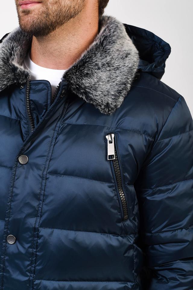Синяя мужская куртка Pezzo – это стильная и теплая модель для холодного времени года. Пуховый наполнитель обеспечивает отличную теплоизоляцию, а капюшон с меховой отделкой защитит от ветра и снега. Состав: нейлон 100%, Состав_подкладка полиэстер 100%, Состав_отделка мех 100%, Состав_наполнитель пух 80%, Состав_наполнитель перо 20%