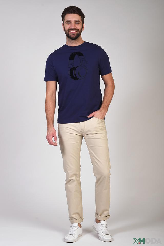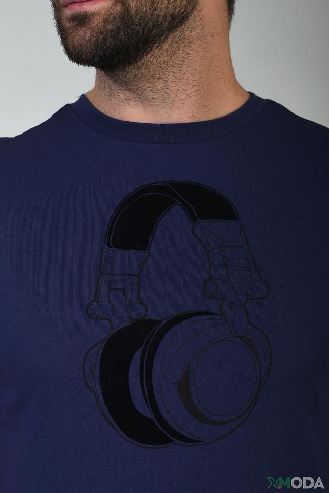 Мужская футболка Pezzo синего цвета с оригинальным принтом в виде наушников. Изготовлена из 100% хлопка, обеспечивающего комфорт и воздухопроницаемость. Стильный и удобный вариант для повседневной носки. Состав: хлопок 100%