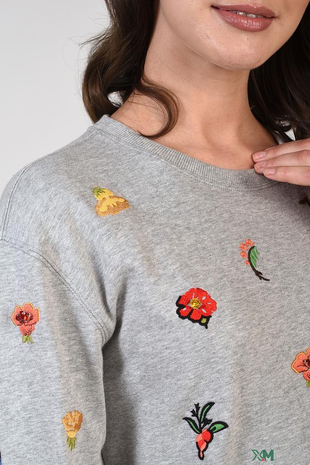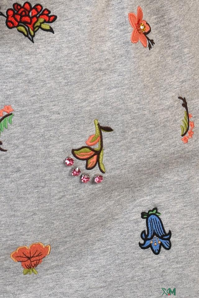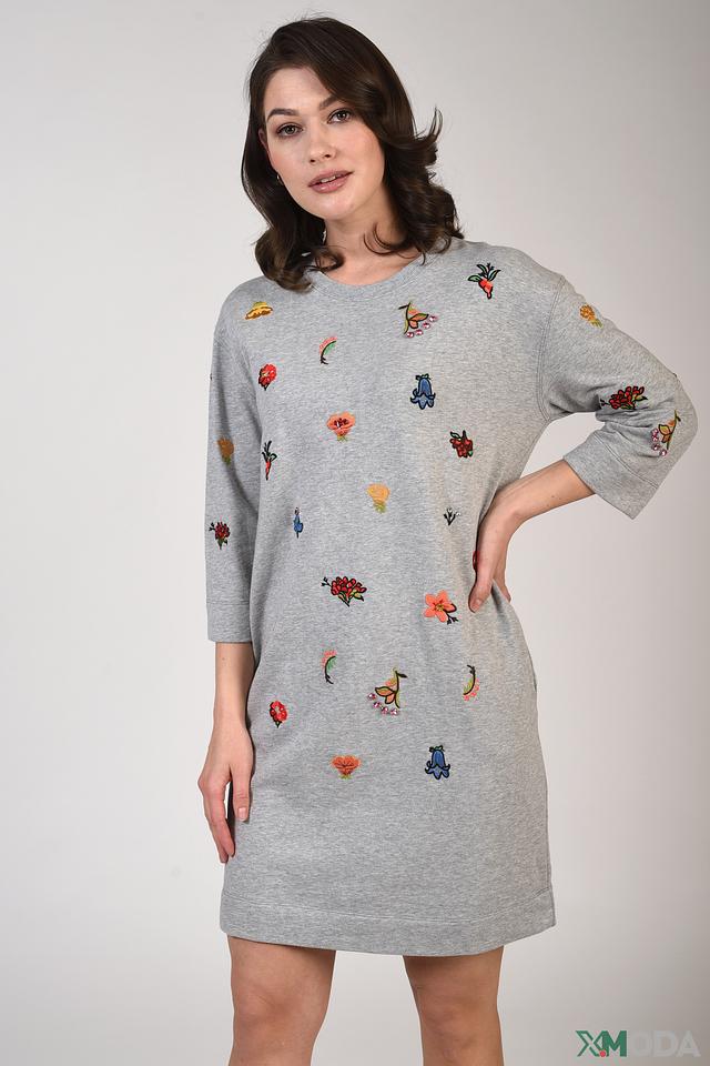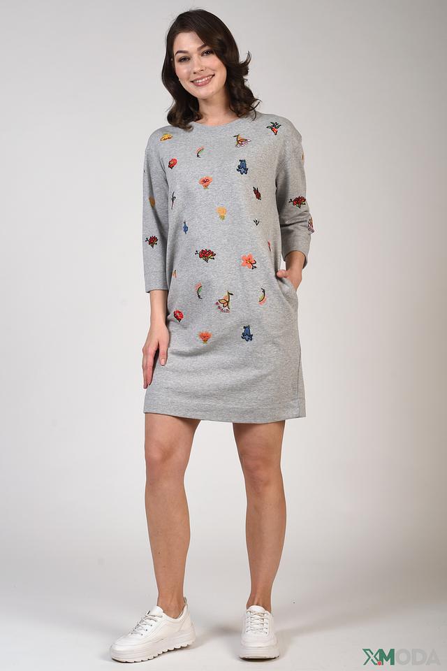 Серое платье от Pezzo выполнено из хлопка и украшено яркой цветочной вышивкой. Удобный прямой крой и рукава 3/4 делают его отличным выбором для повседневной носки. Состав: хлопок 100%