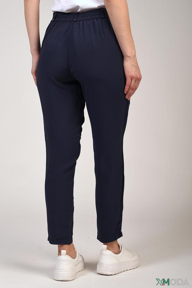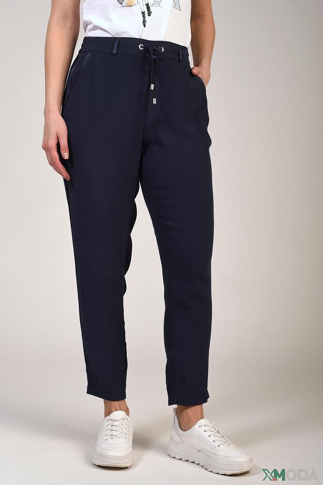 Женские брюки Pezzo темно-синего цвета – это стильное и комфортное решение для повседневного гардероба. Модель выполнена из мягкой ткани с добавлением вискозы, имеет удобный пояс на резинке и завязках. Состав: вискоза 58%, район 42%