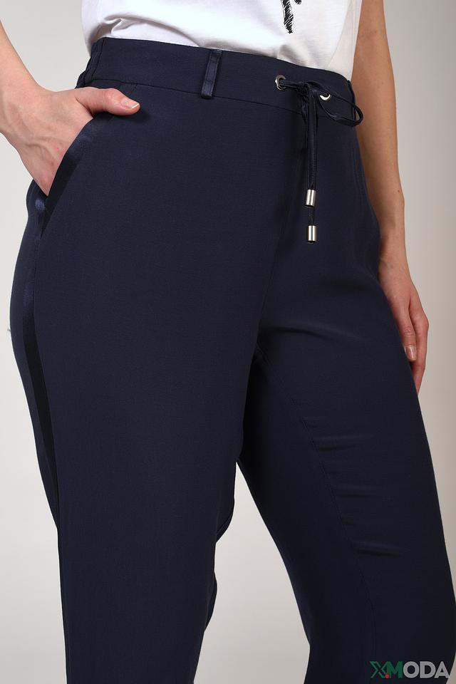 Особенности модели: эластичный пояс с кулиской, прямой крой, стандартная длина. Брюки идеально сочетаются с блузками, футболками и жакетами, позволяя создавать как деловые, так и повседневные комплекты.