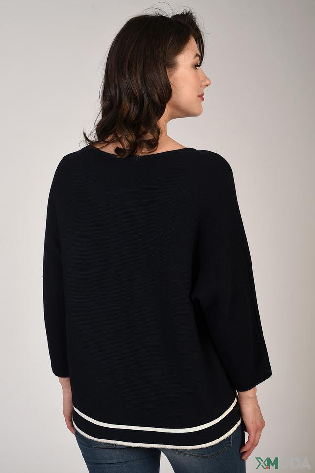 Текстурная вязка придает пуловеру объём и фактурность, а широкие рукава 3/4 обеспечивают комфорт и свободу движений. В нижней части пуловер украшен широкой белой полосой с логотипом бренда, выполненным в виде страз.