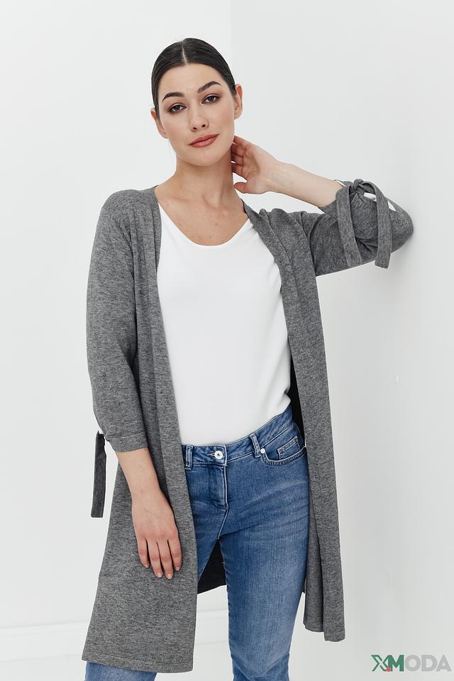 Рукава 3/4 с завязками добавляют кардигану оригинальности и позволяют регулировать их длину. Отсутствие застежек обеспечивает легкость в носке и комфорт.