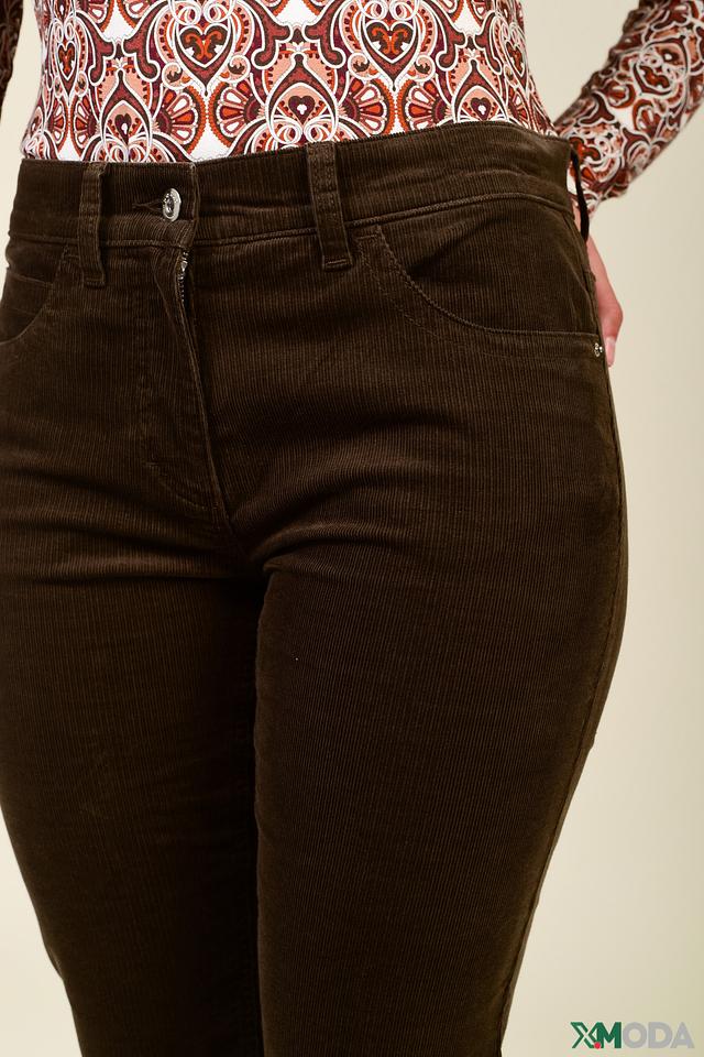 Брюки имеют классический прямой крой и стандартную посадку на талии. Коричневый цвет делает их универсальным элементом гардероба, который легко сочетается с различными видами верхней одежды и обуви. Вельветовая текстура придает брюкам особый шарм и элегантность.