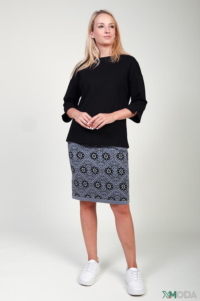 Модель имеет прямой крой, круглый вырез горловины и рукава длиной 3/4. Пуловер хорошо держит форму и не мнется.