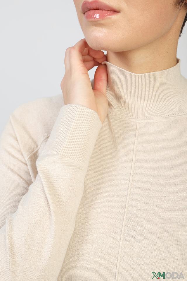 Дизайн пуловера лаконичный и элегантный. Высокий горл придаёт образу изысканность, а нейтральный бежевый цвет легко сочетается с другими элементами одежды. Пуловер идеально подойдет для создания повседневных и деловых образов.