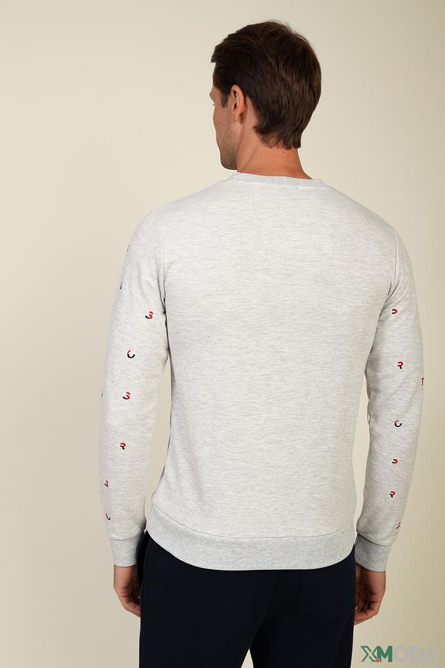 Мужской джемпер Pezzo Sport выполнен в светло-сером меланжевом цвете. Модель имеет круглый вырез горловины и длинные рукава с манжетами.