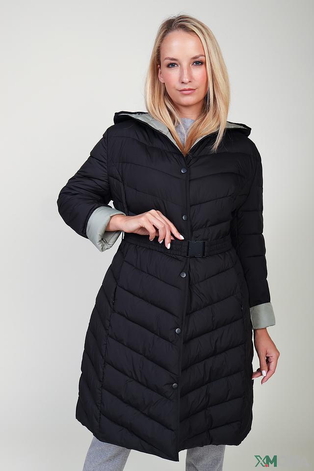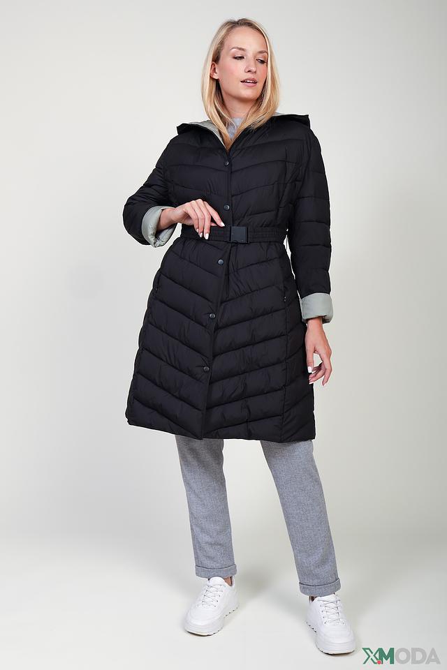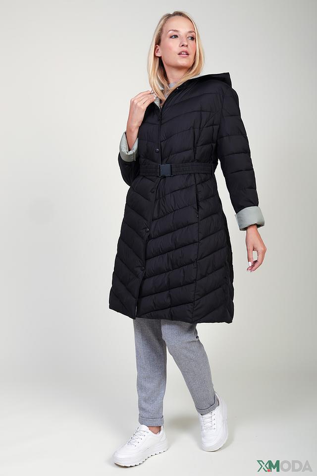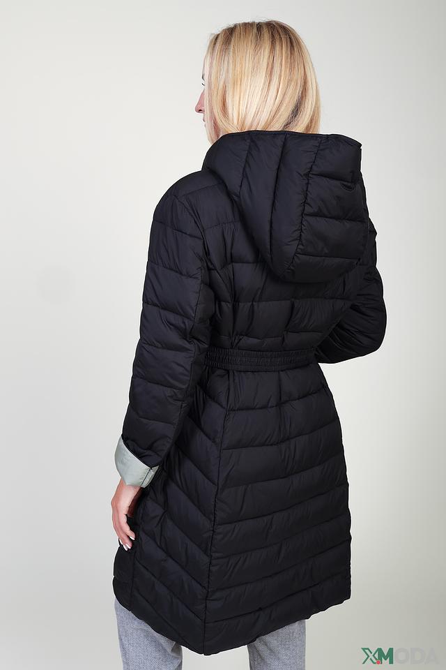 Чёрное стеганое пальто Pezzo – это стильное и теплое решение для прохладной погоды. Модель имеет удобный капюшон, пояс и застежку на кнопки, а также оригинальную подкладку и манжеты светло-зелёного цвета. Состав: полиэстер 100%, Состав_наполнитель полиэстер 100%, Состав_подкладка полиэстер 100%