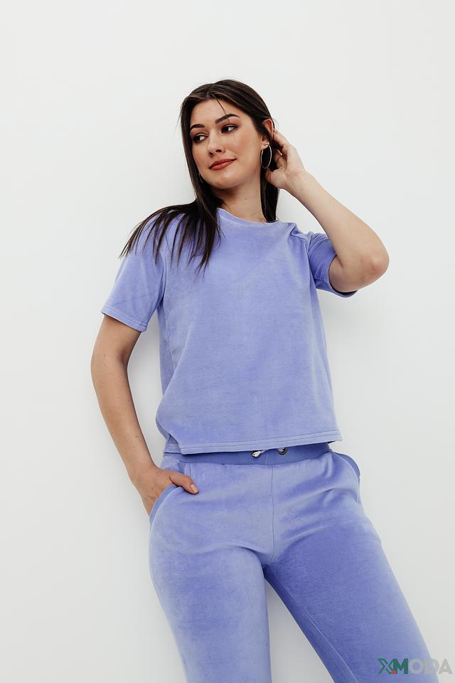 Женская футболка Pezzo лавандового цвета выполнена из мягкого велюра. Модель имеет круглый вырез горловины и короткие рукава, идеально подходит для создания комфортных и стильных образов. Состав: хлопок 75%, полиэстер 25%