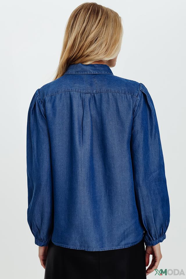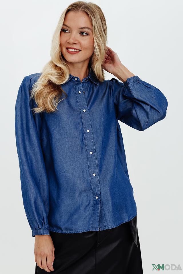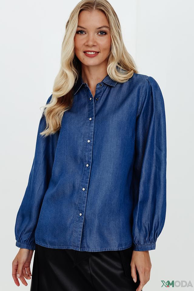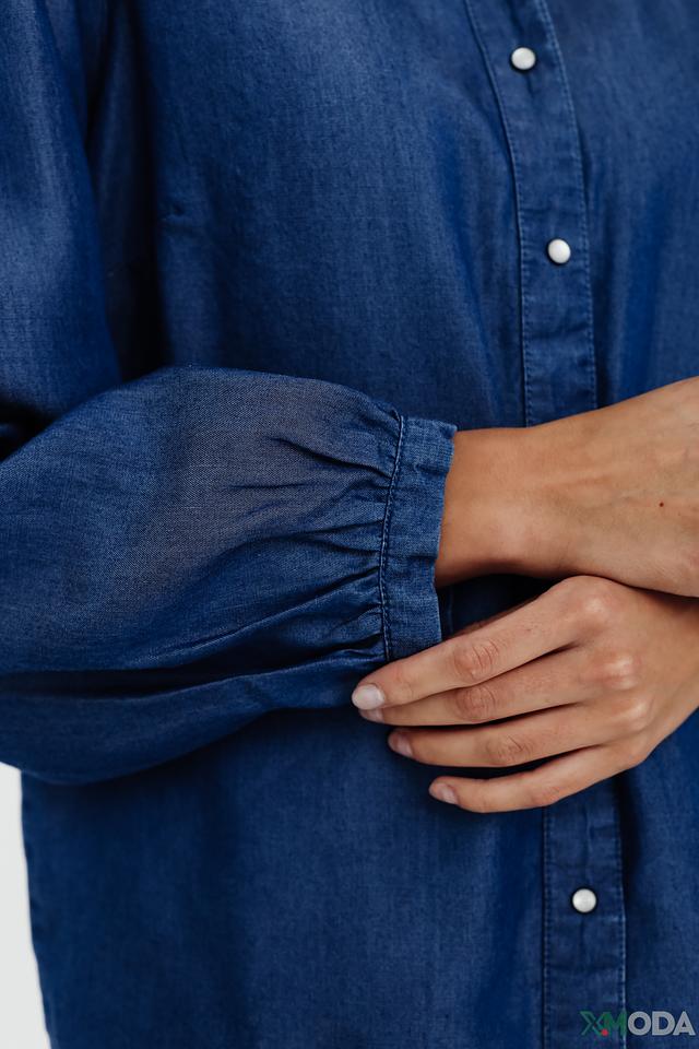 Синяя рубашка Pezzo из ткани, имитирующей деним, с длинными рукавами и застежкой на пуговицы. Модель отличается свободным кроем и рукавами с манжетами, собранными в небольшие складки. Состав: тенсель 100%