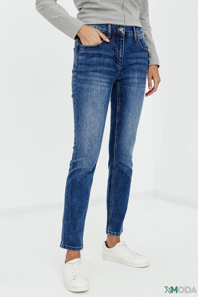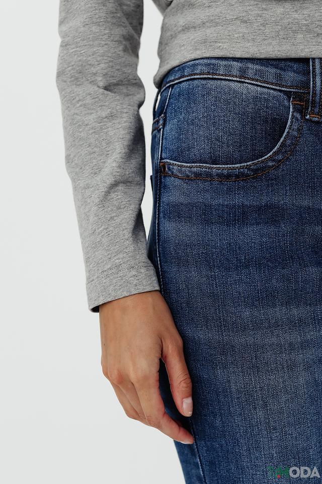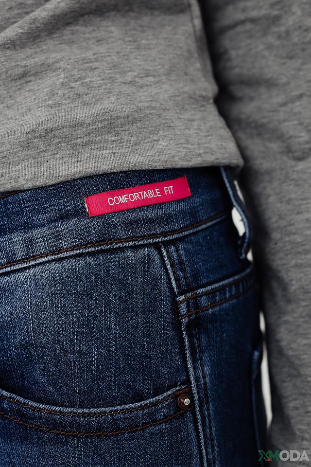Джинсы имеют прямой крой и стандартную посадку по талии, обеспечивая комфорт в носке. Ткань состоит из хлопка, полиэстера, вискозы и спандекса, что обеспечивает удобство, износостойкость и небольшую эластичность.