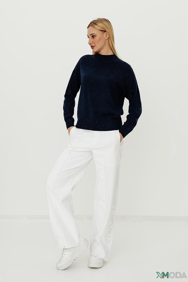 Этот стильный пуловер от Pezzo выполнен в насыщенном тёмно-синем цвете и украшен деликатным люрексом, который придаёт ему изысканный вид. Модель имеет удобный вырез горловины и классический крой, подходящий для создания различных образов.