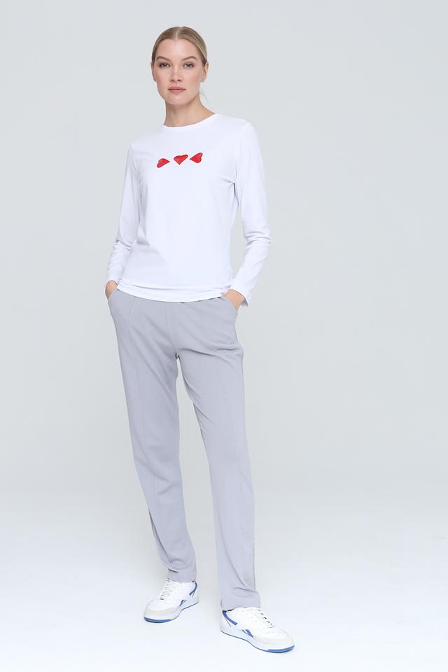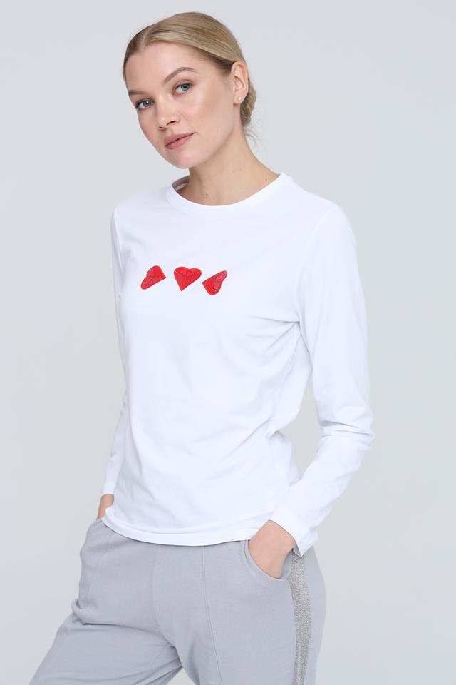 Особый акцент в дизайне – три небольших красных сердца, расположенных на груди. Этот декор придает лонгсливу игривый и романтичный вид. Лонгслив идеально подойдет для создания повседневных образов, а также для занятий спортом или активного отдыха.