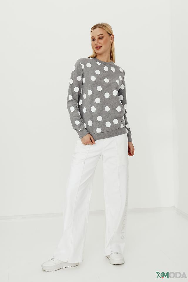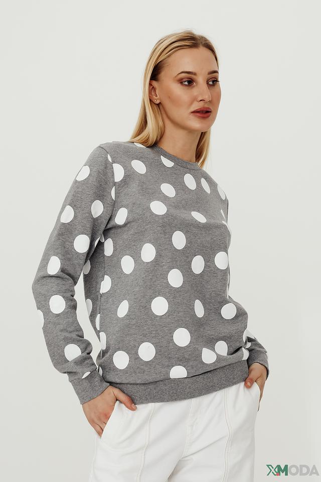 Серый пуловер Pezzo с белым горошком – стильная и комфортная модель из 100% хлопка. Удобный крой и актуальный принт делают этот пуловер отличным выбором для повседневного гардероба. Состав: хлопок 100%