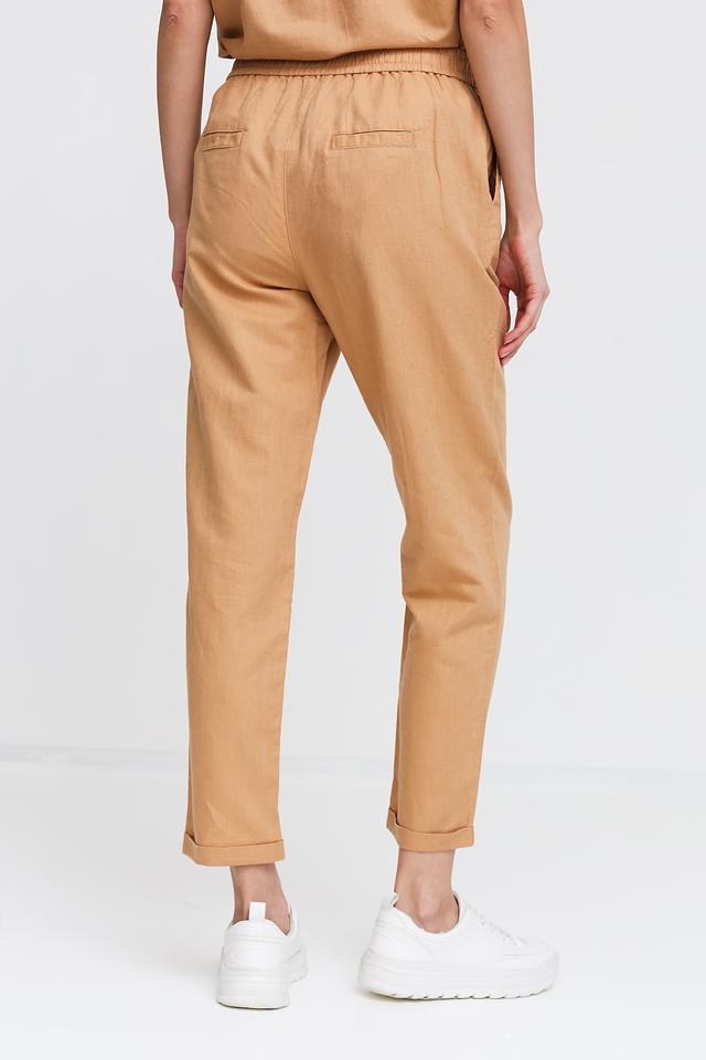 Бежевые брюки Pezzo – это стильное и комфортное решение для создания повседневных образов. Модель выполнена из натурального льна с хлопком, имеет удобный эластичный пояс и боковые карманы. Состав: лен 55%, хлопок 45%