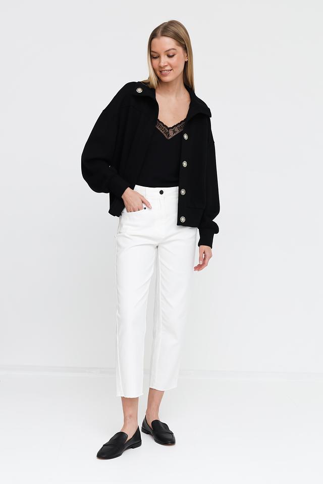 Куртка имеет свободный крой, который не сковывает движения и обеспечивает комфорт в носке. Застёжка на пуговицы позволяет регулировать степень прилегания и создавать разные образы.