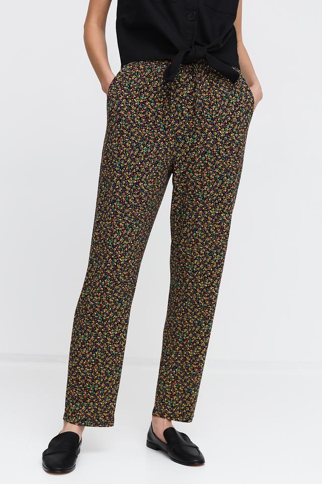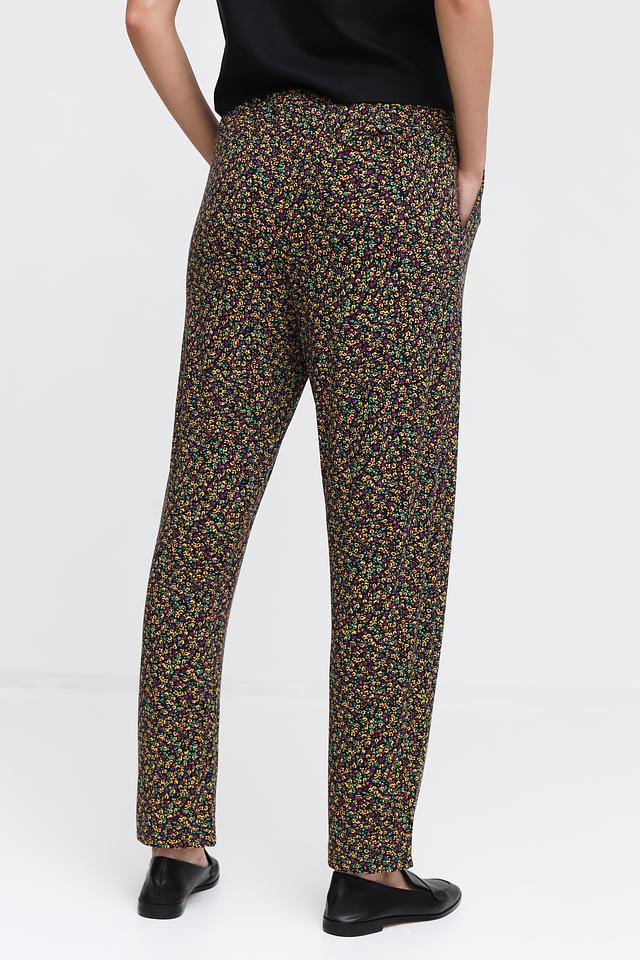 Женские брюки Pezzo чёрного цвета с ярким цветочным принтом станут стильным дополнением к вашему гардеробу. Модель выполнена из мягкой вискозы с добавлением эластана, обеспечивающего комфорт при носке. Состав: вискоза 96%, эластан 4%