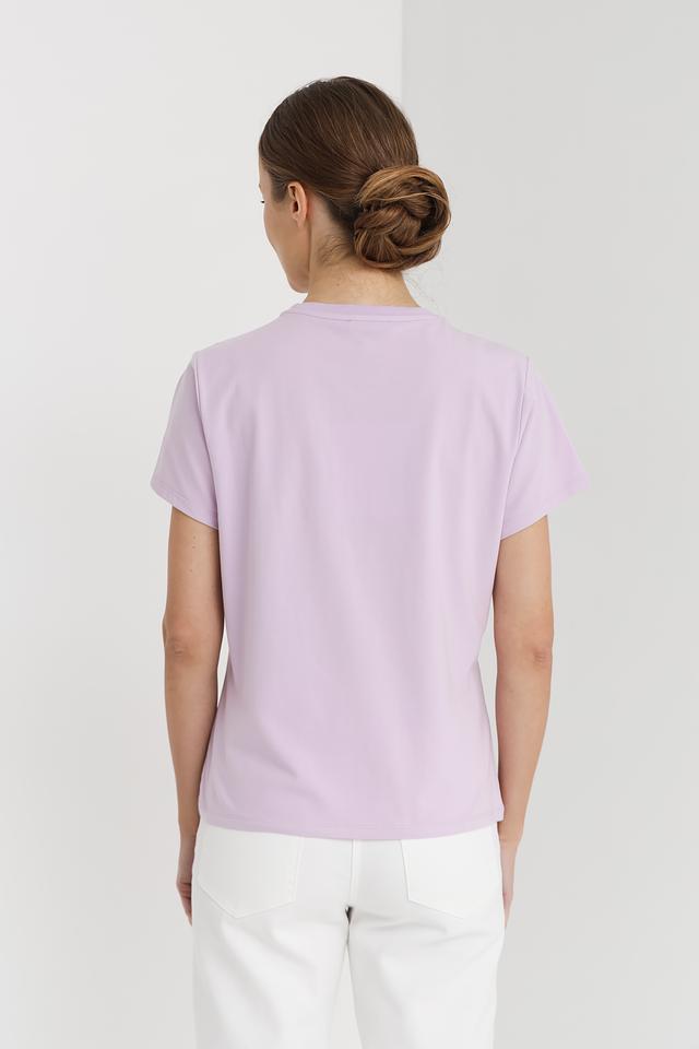 Женская футболка Pezzo лавандового цвета украшена мерцающей серебристой звездой. Изготовлена из мягкого хлопка с добавлением эластана для комфорта и свободы движений. Стильный и удобный выбор для повседневного образа. Состав: хлопок 95%, эластан 5%