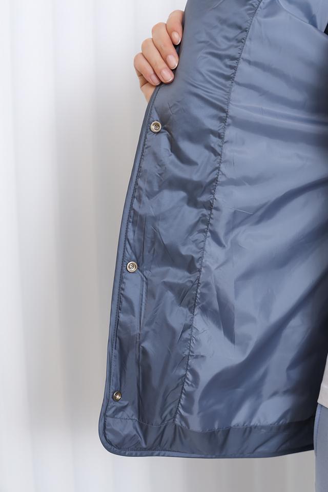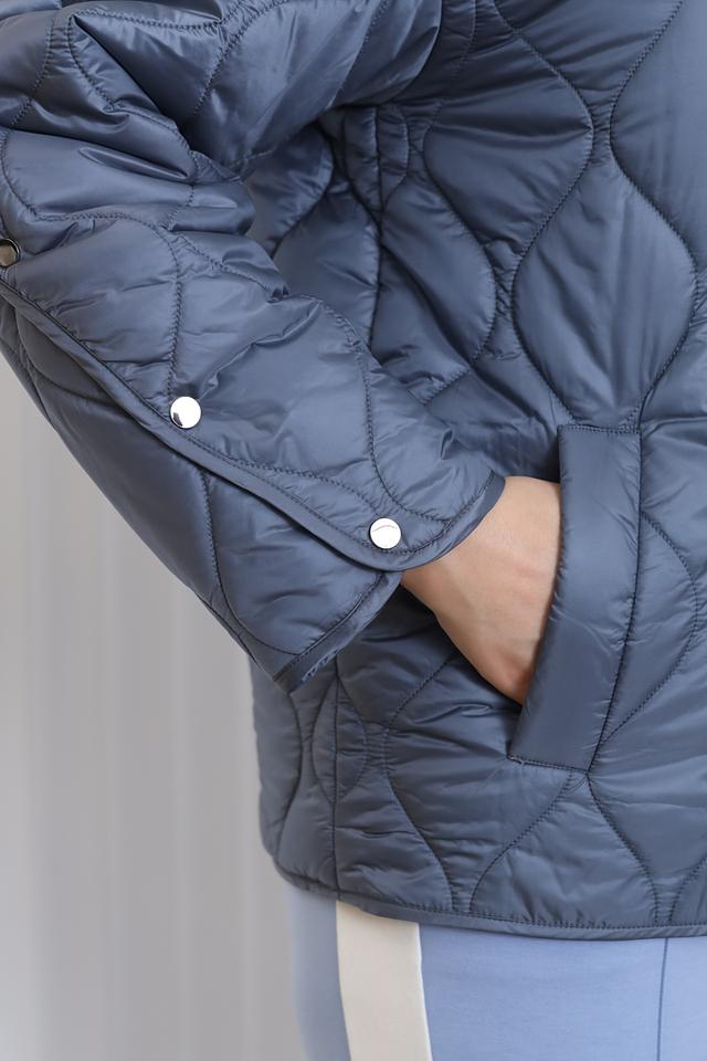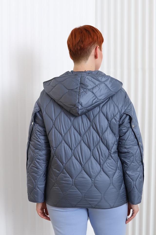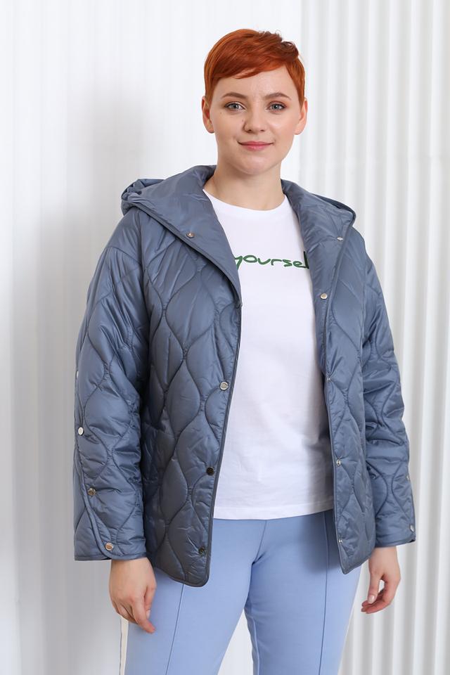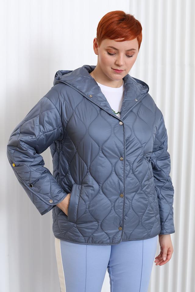 Куртка имеет удобный капюшон, который можно регулировать по объему. Застежка – кнопки по всей длине изделия. Стеганая фактура придает куртке стильный и современный вид.