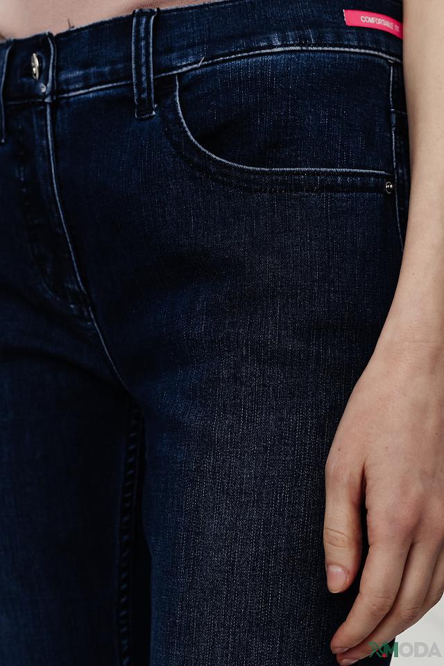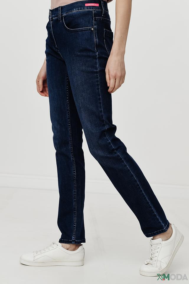 Джинсы имеют прямой крой, который обеспечивает комфортную посадку по фигуре и не сковывает движений. Высокая посадка подчеркивает талию и визуально удлиняет ноги. Ткань джинсов состоит из 68% хлопка, 26% полиэстера, 3% вискозы и 1% эластана, что обеспечивает удобство в носке и сохранение формы.