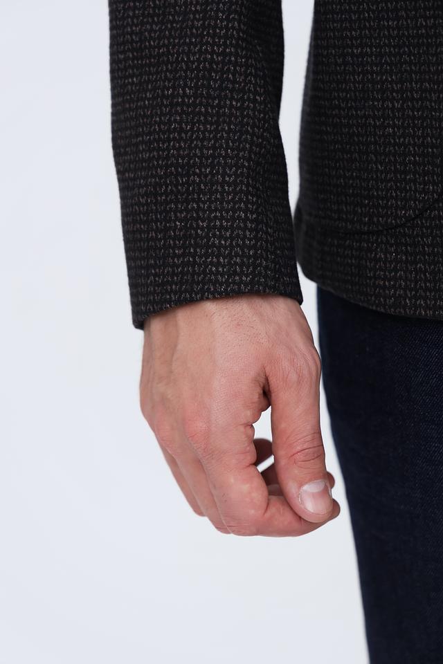 Пиджак имеет классический крой, который хорошо сидит на фигуре и подходит для различных случаев – от деловых встреч до повседневной носки. Застёжка на две пуговицы обеспечивает удобство и надежность. Воротник пиджака классической формы.
