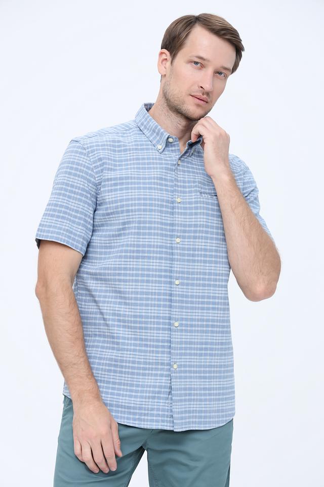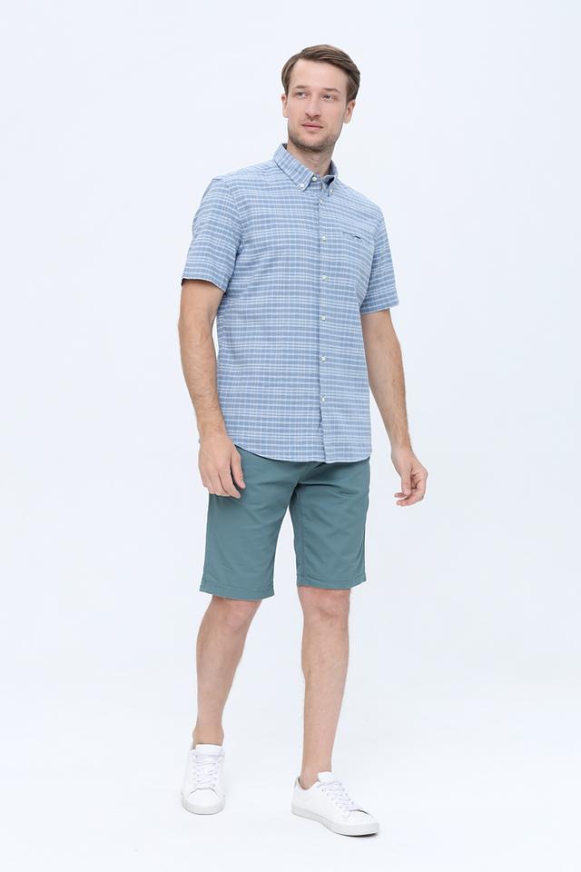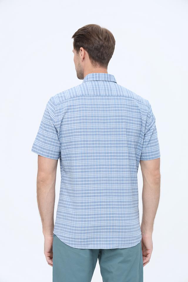 Мужская рубашка Pierre Cardin голубого цвета с коротким рукавом, выполнена в классическом клетчатом дизайне. Изготовлена из высококачественного хлопка с добавлением эластана для комфорта и удобства. Состав: хлопок 98%, эластан 2%