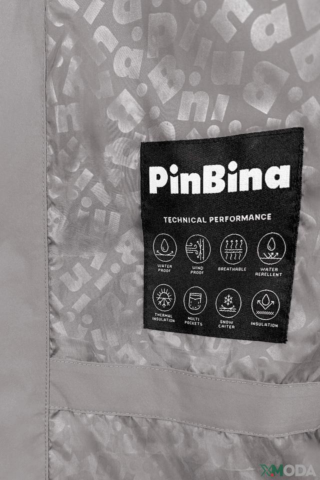Подкладка также выполнена из 100% полиэстера, обеспечивая дополнительный комфорт. На рукаве расположен логотип бренда PinBina. Пальто обладает водоотталкивающими и ветрозащитными свойствами, что делает его незаменимым в непогоду. На внутренней стороне куртки расположена бирка с указанием технических характеристик: водонепроницаемость, ветрозащита, дышащие свойства, влагостойкость, теплоизоляция, наличие мульти-карманов и защита от снега.