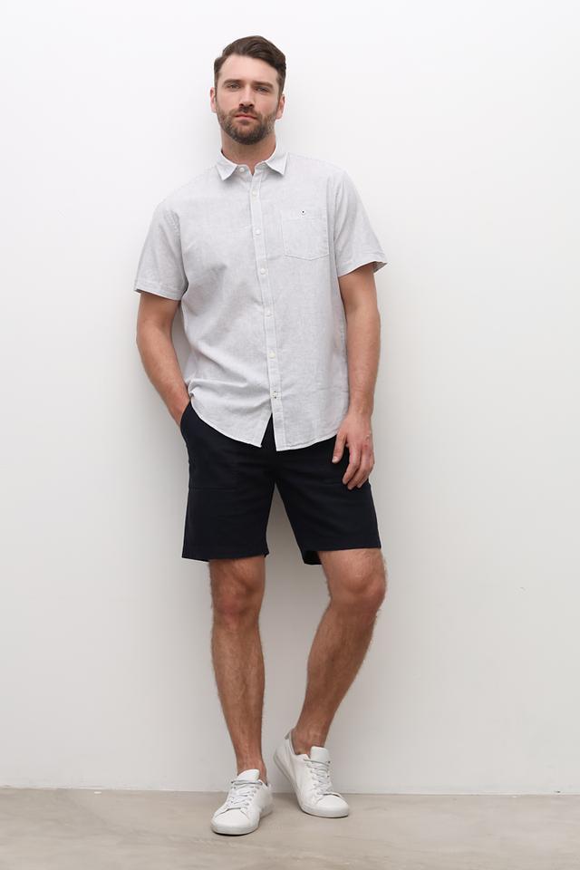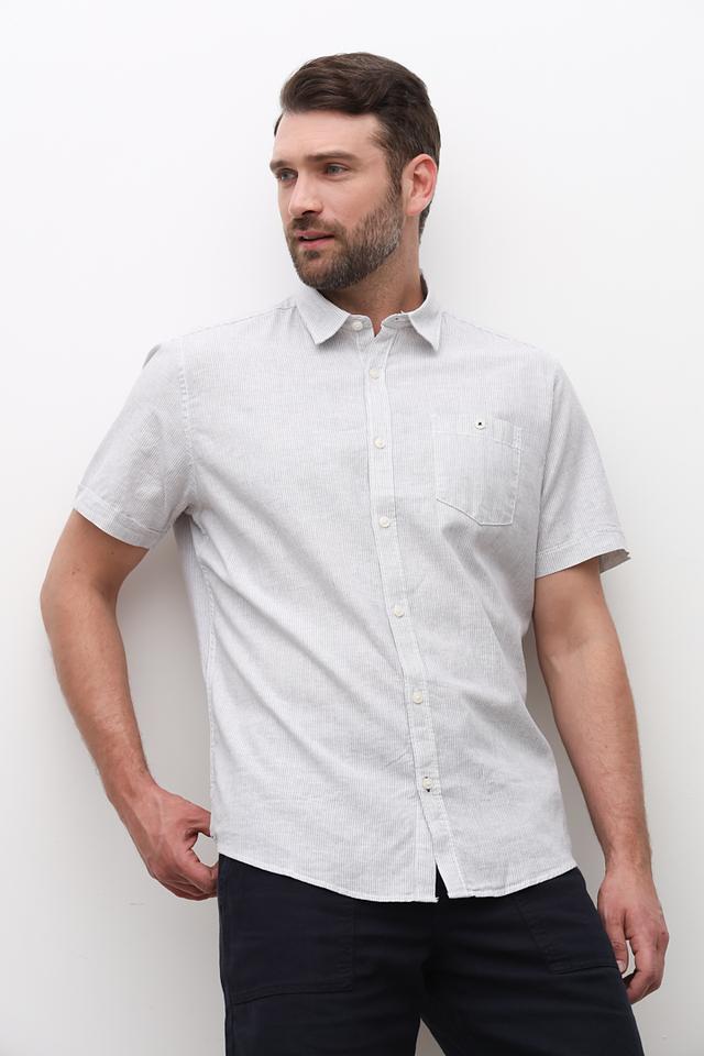 Мужская рубашка Pioneer короткого рукава серого цвета в тонкую полоску. Изготовлена из натурального смесового материала – льна и хлопка, обеспечивающего комфорт и воздухопроницаемость. Состав: лен 55%, хлопок 45%