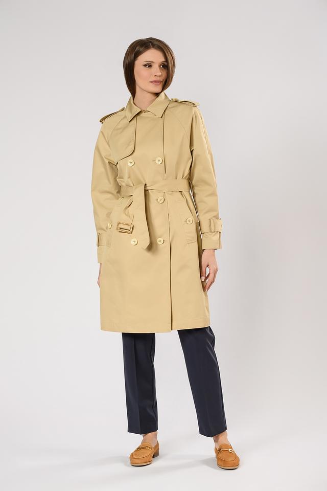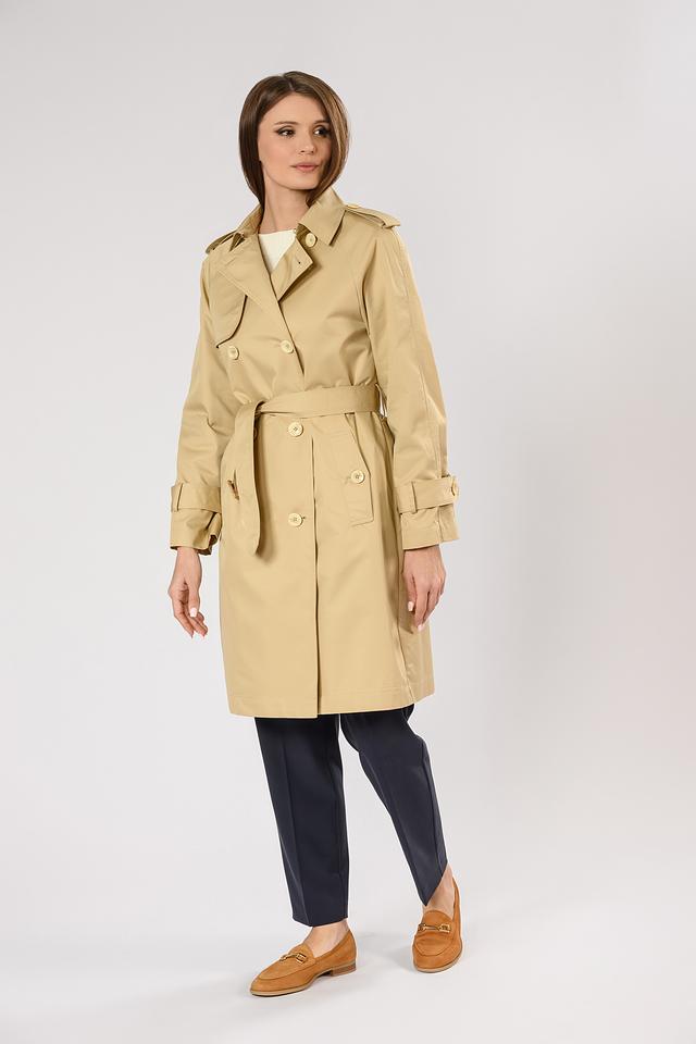 Бежевый плащ Penny Black Black – это классическая модель в стиле тренч, выполненная из хлопка с добавлением полиэстера. Плащ имеет двубортную застёжку, пояс и погоны на плечах, что придает ему элегантный и стильный вид. Состав: хлопок 66%, полиэстер 34%