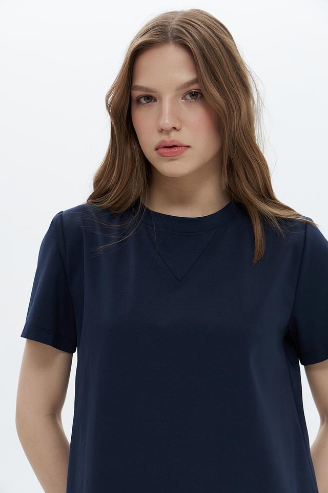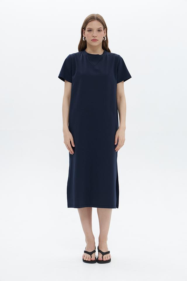 Тёмно-синее платье от Croche прямого кроя – это универсальный предмет гардероба. Платье выполнено из мягкого и приятного к телу трикотажа, имеет длину миди и удобный круглый вырез горловины. Состав: хлопок 52%, полиамид 40%, эластан 8%