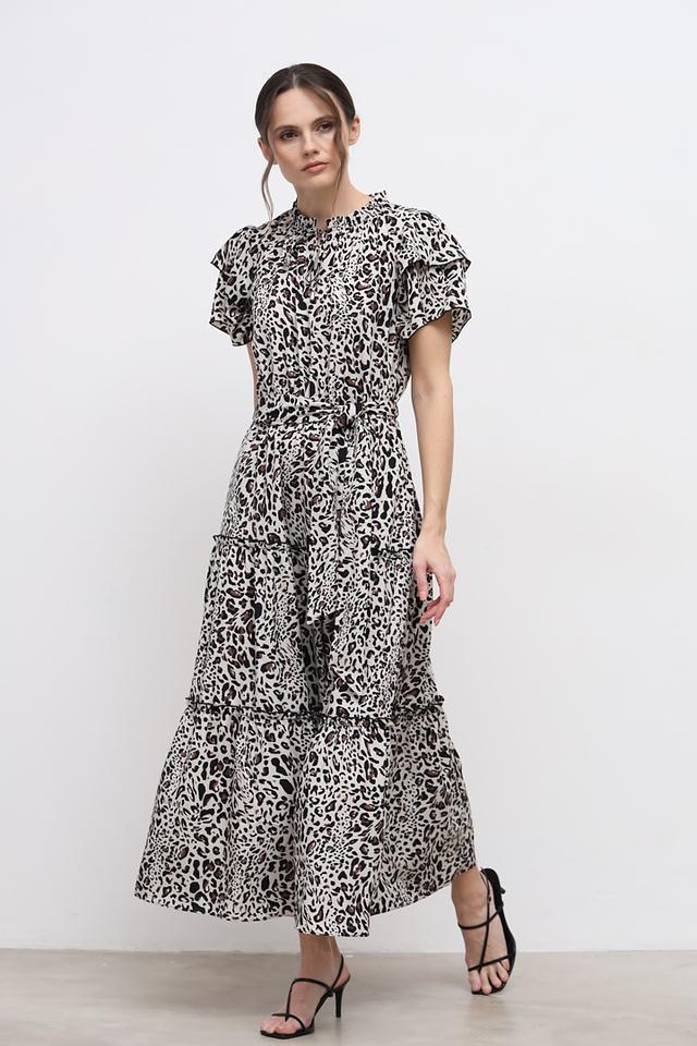 Это платье от Apart станет отличным дополнением к вашему гардеробу. Модель выполнена в бежевых тонах с эффектным леопардовым принтом, который придает образу динамичность и выразительность.