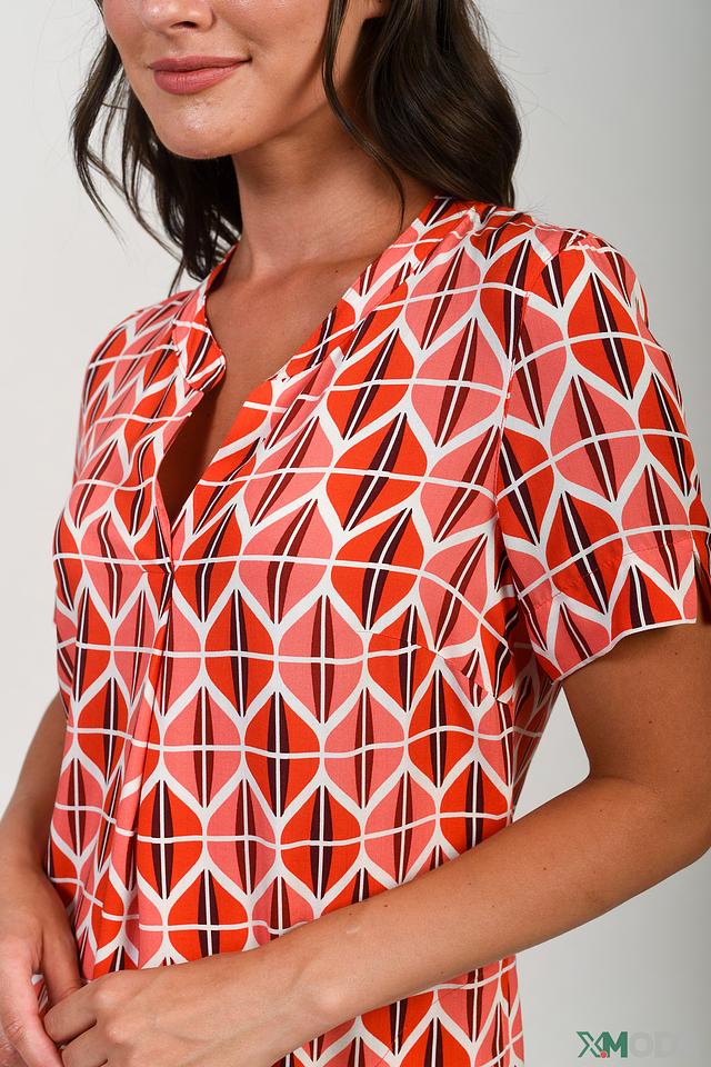 Это платье от бренда Bianca станет прекрасным дополнением вашего гардероба. Выполнено в ярких оранжевых тонах с геометрическим принтом, который придает образу оригинальность и динамичность.