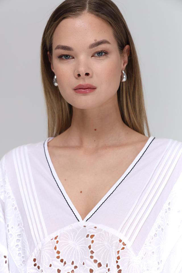 Белое платье от Broadway выполнено из 100% хлопка и украшено ажурной вышивкой. Модель свободного кроя с V-образным вырезом и рукавами-фонариками станет отличным выбором для создания лёгкого и стильного образа. Состав: хлопок 100%