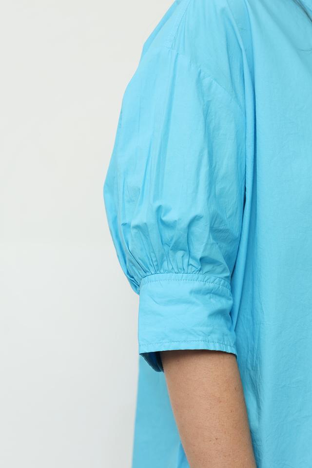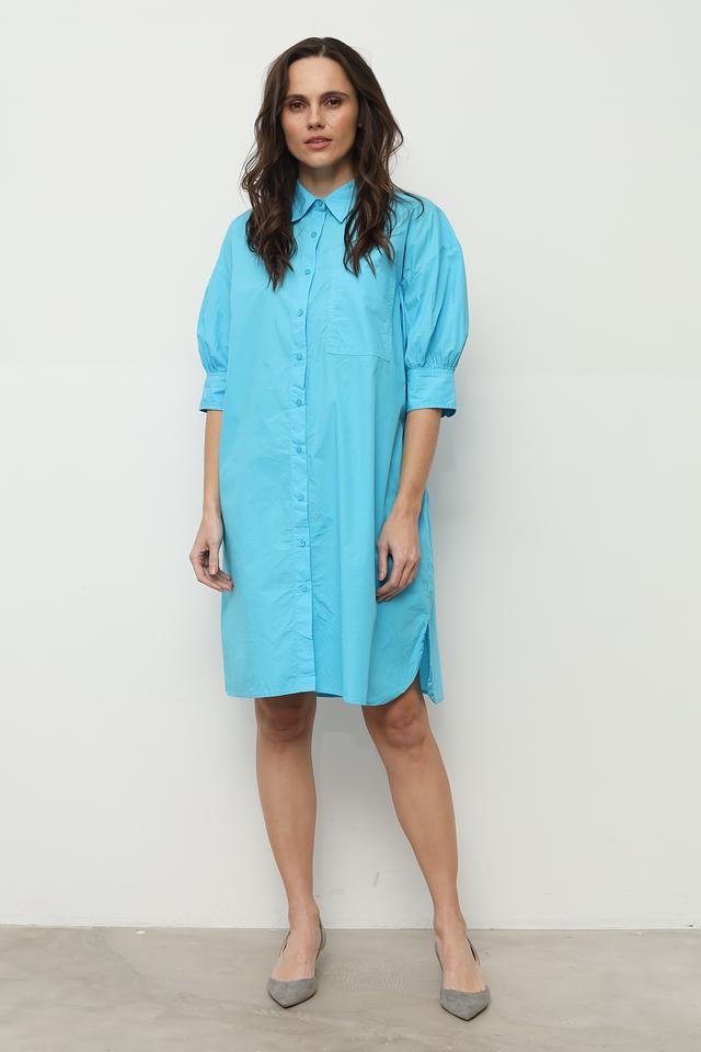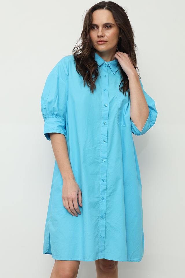 Платье рубашка от Broadway бирюзового цвета выполнено из 100% хлопка. Модель свободного кроя с короткими рукавами-фонариками и застежкой на пуговицы. Состав: хлопок 100%
