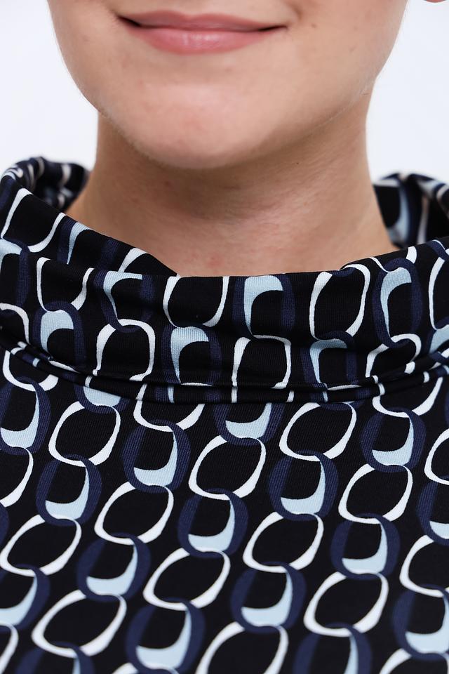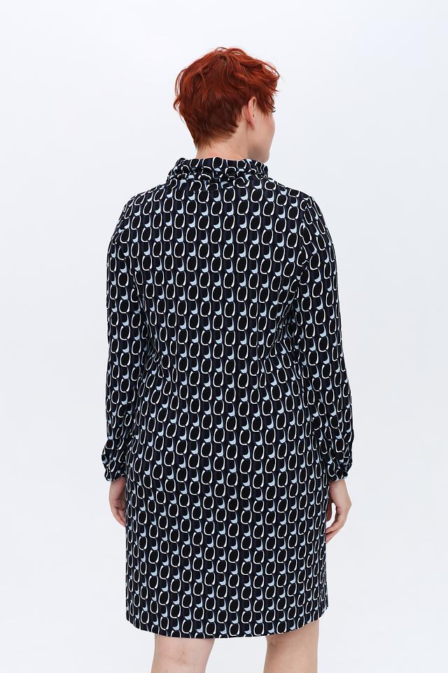 Это элегантное платье от бренда Erfo станет прекрасным дополнением к вашему гардеробу. Платье выполнено в чёрно-белой цветовой гамме и украшено стильным геометрическим принтом в виде повторяющихся овалов.