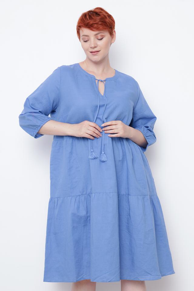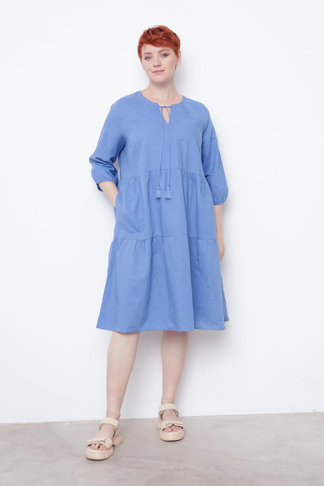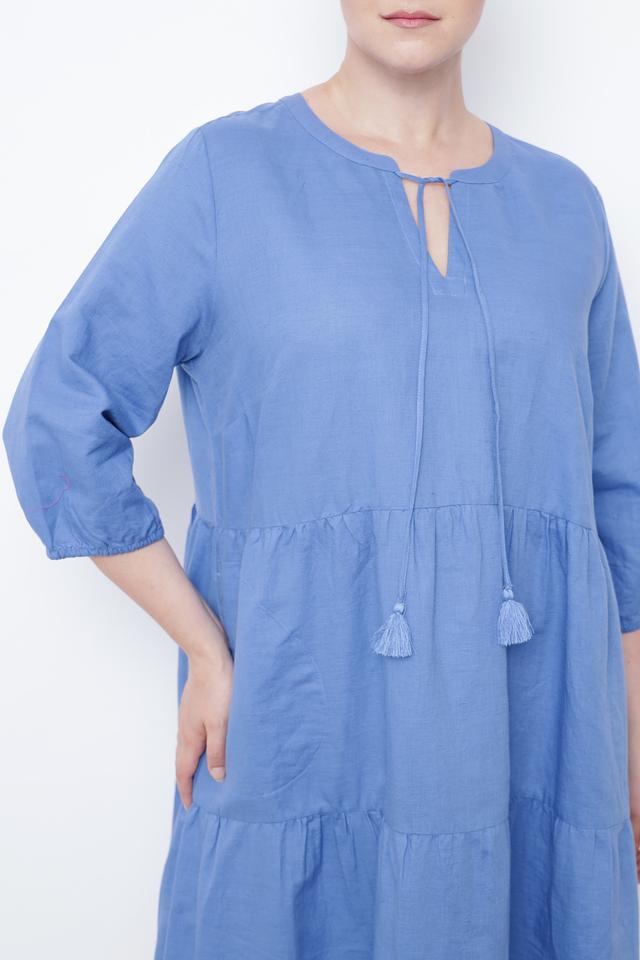 Голубое платье от Frapp – это лёгкое и комфортное решение для летнего гардероба. Модель выполнена из натурального льна и хлопка, имеет свободный крой и дополняется декоративными завязками с кисточками. Состав: лен 55%, хлопок 45%