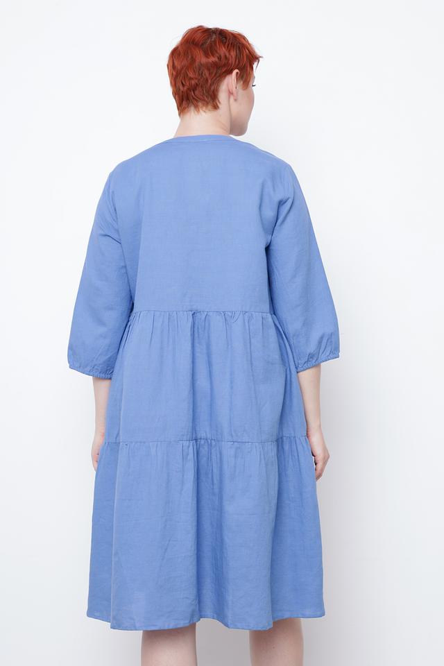 Это платье от бренда Frapp станет отличным выбором для создания непринужденного и стильного образа. Платье выполнено в нежном голубом цвете и сшито из натуральных материалов – 55% льна и 45% хлопка, что обеспечивает комфорт в жаркую погоду.