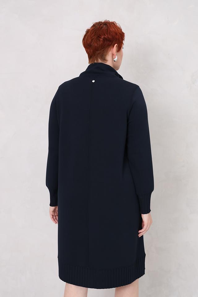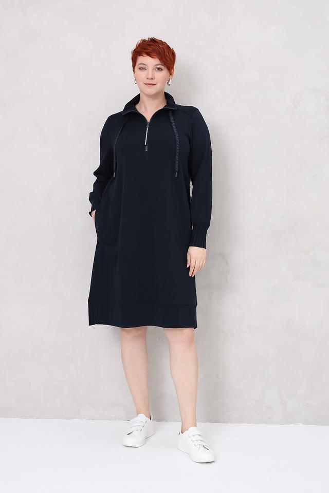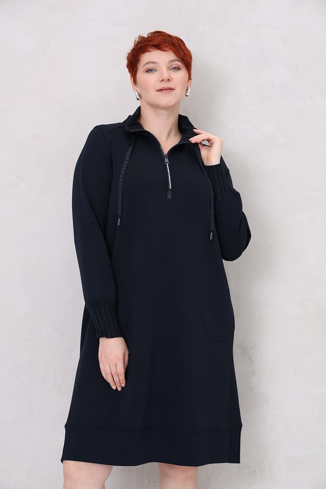 Трикотажное платье Frapp темно-синего цвета с воротником-стойкой и молнией. Удобный крой и мягкий материал обеспечивают комфорт в повседневной носке. Идеально подходит для создания стильного и непринужденного образа. Состав: вискоза 49%, полиэстер 43%, эластан 8%