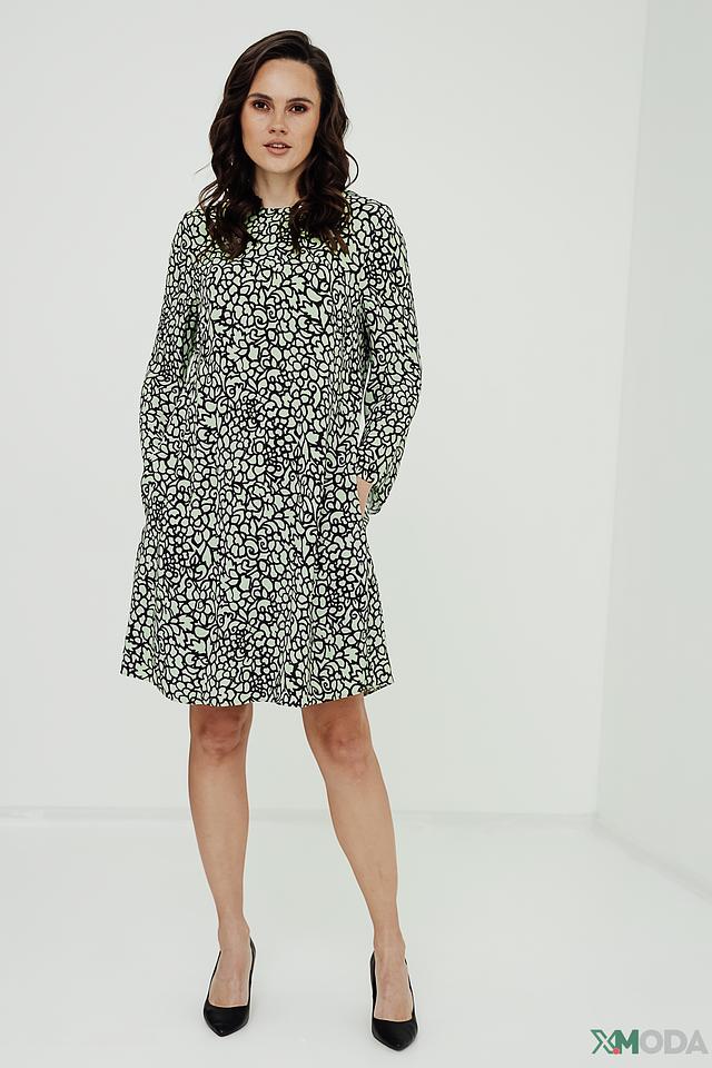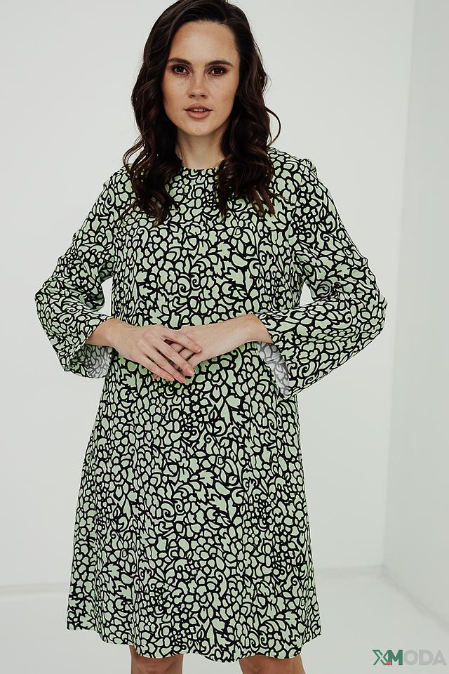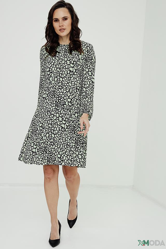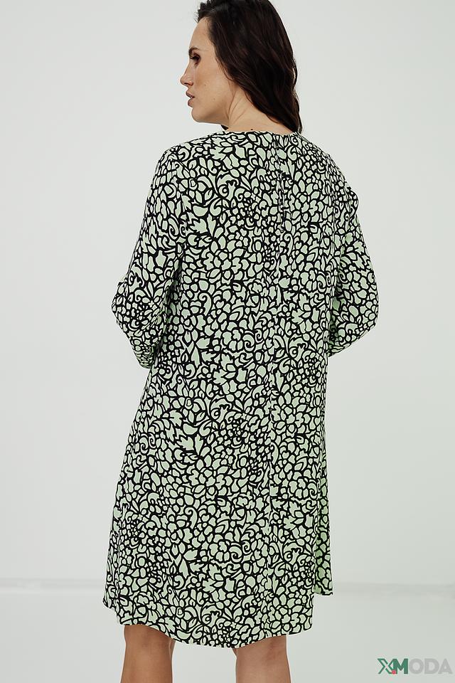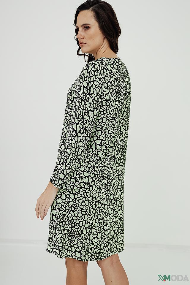 Платье Luisa Cerano светло-зелёного цвета с оригинальным чёрно-белым узором. Модель выполнена из мягкой вискозы, обеспечивающей комфорт в носке. Платье имеет прямой силуэт и рукава 3/4. Состав: вискоза 100%, Состав_подкладка вискоза 100%