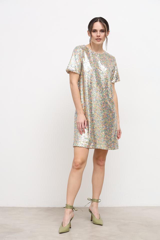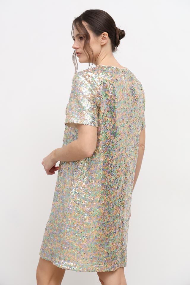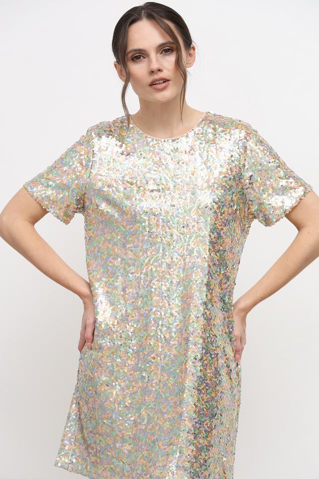 Платье Joop! разноцветного оттенка, полностью расшитое пайетками, станет ярким акцентом вашего образа. Короткий рукав и свободный крой обеспечивают комфорт и свободу движений. Состав: полиэстер 100%, Состав_подкладка полиэстер 100%