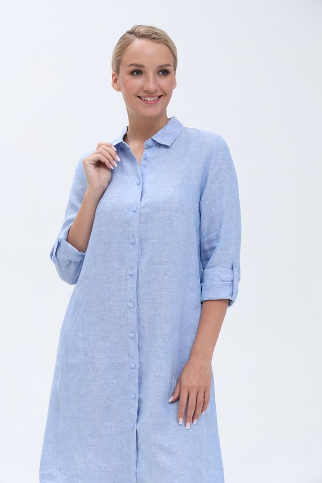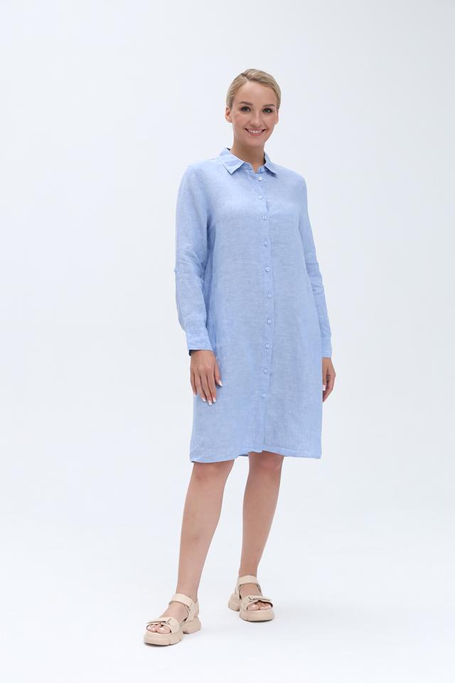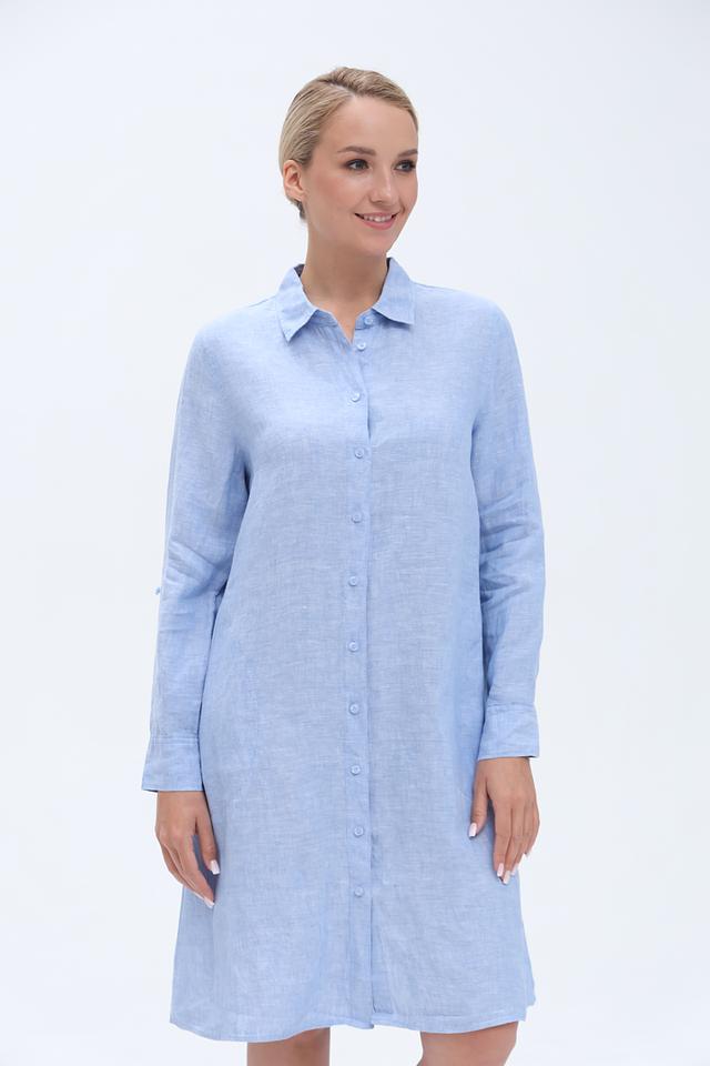 Платье-рубашка от Olsen голубого цвета выполнено из 100% льна. Это стильное и комфортное платье с длинным рукавом и застежкой на пуговицы идеально подойдет для повседневной носки. Состав: лен 100%