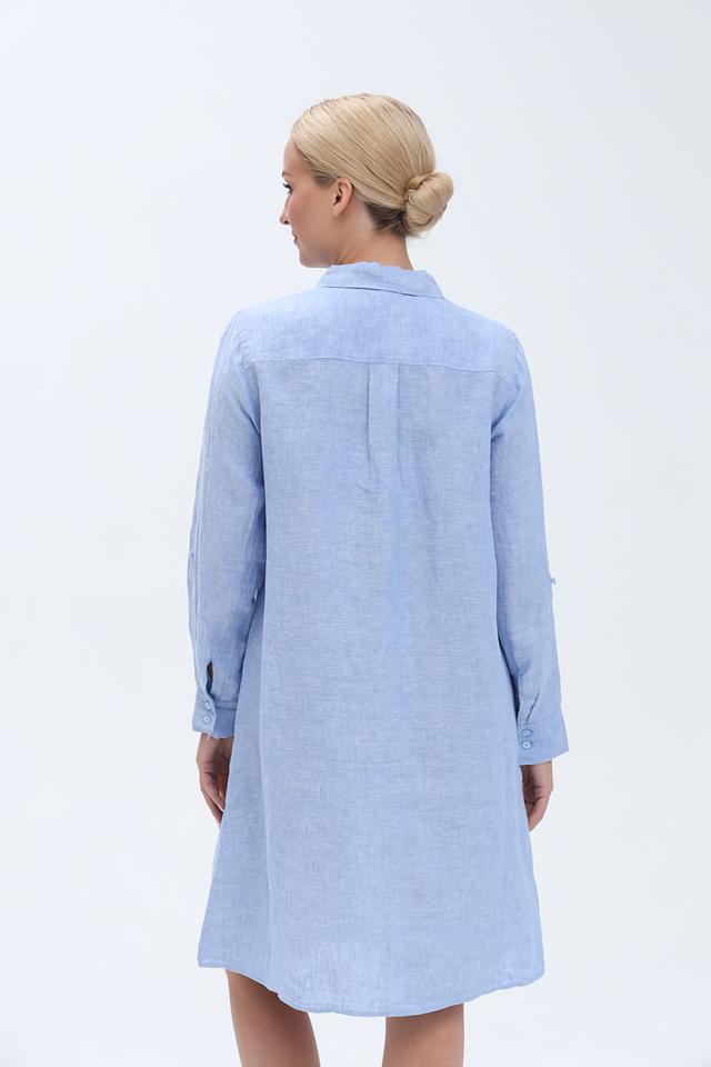 Платье-рубашка от бренда Olsen – это отличный выбор для создания легкого и непринужденного образа. Выполнено в нежном голубом цвете из 100% льна, что обеспечивает комфорт и воздухопроницаемость в жаркую погоду.