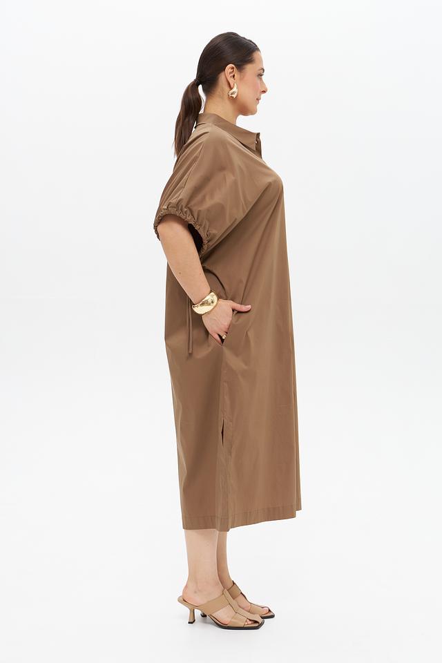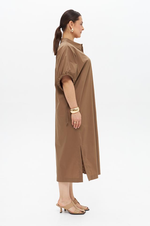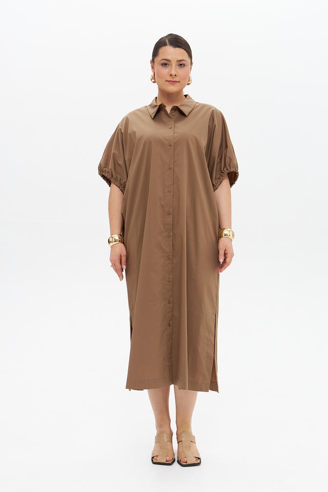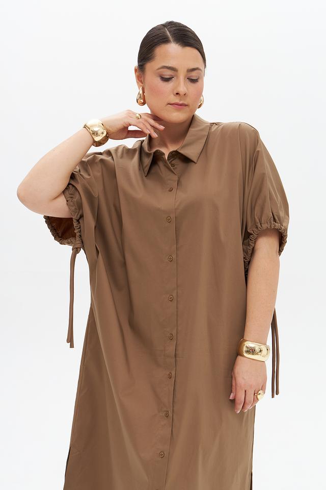 Бежевое платье рубашка от Catnoir – стильное и комфортное решение для повседневного образа. Платье выполнено из хлопка с добавлением нейлона и спандекса, имеет рубашечный крой, короткие рукава с оборками и застёжку на пуговицы. Состав: хлопок 74%, нейлон 23%, спандекс 3%