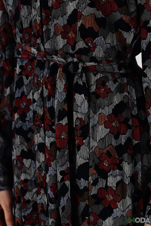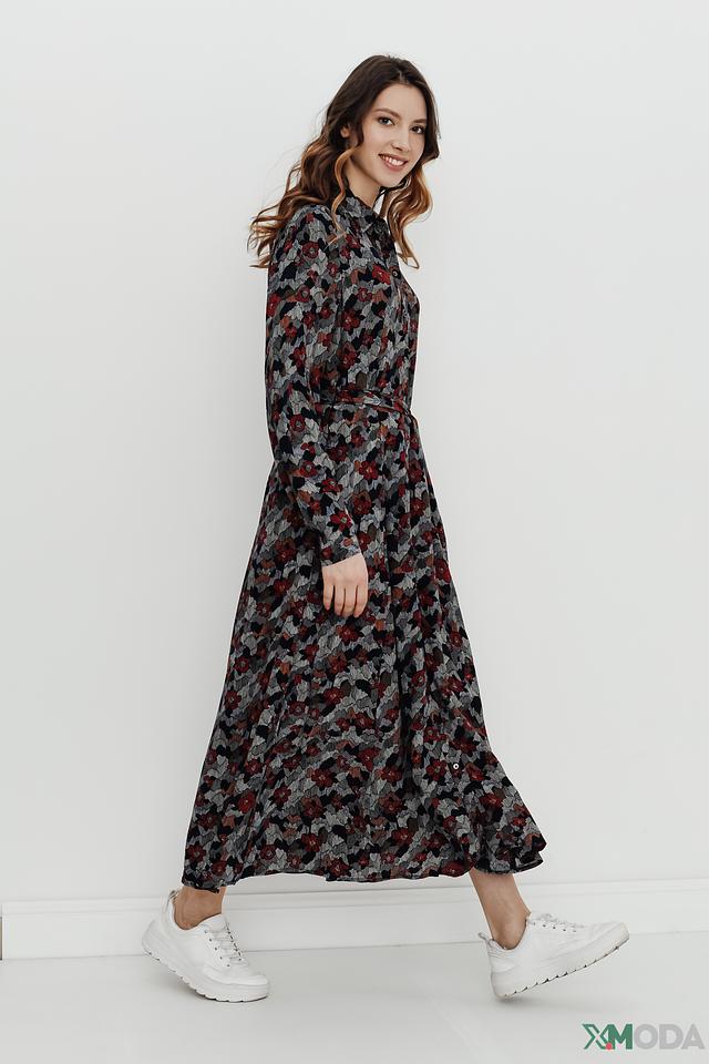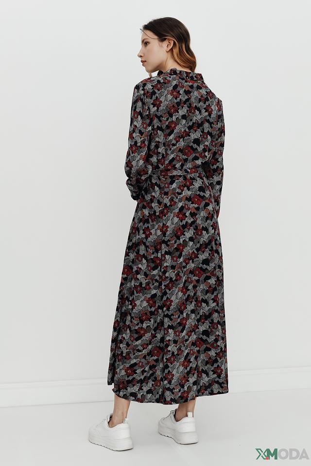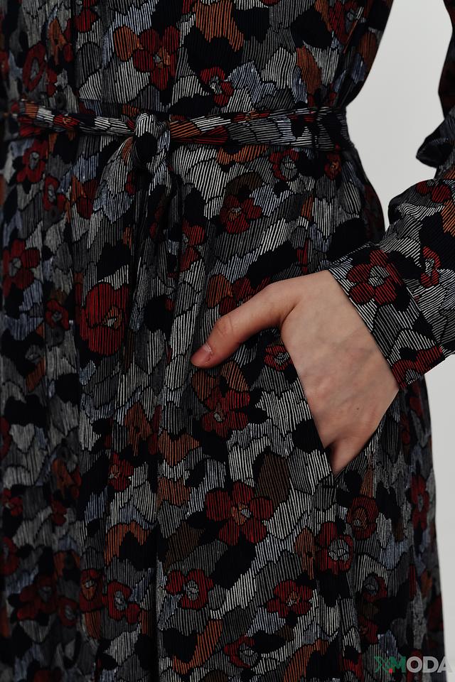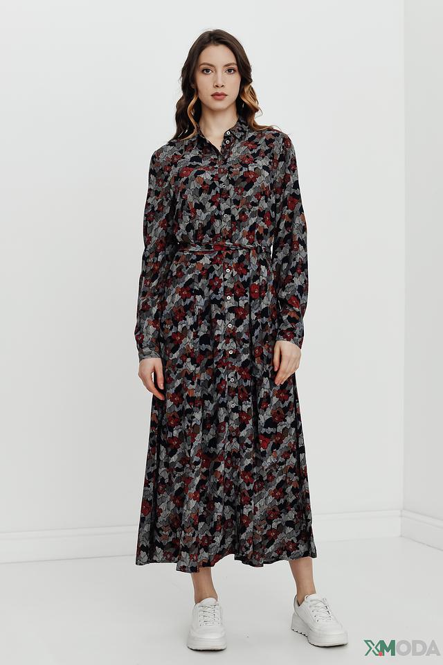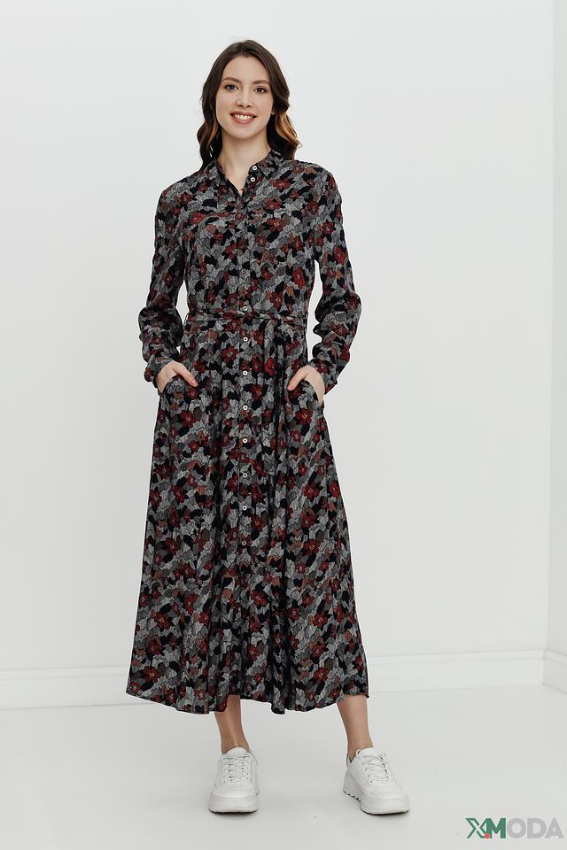 Особенностью этого платья является яркий цветочный принт, который добавляет образу женственности и легкости. Платье имеет боковые карманы. Подкладка также выполнена из 100% вискозы.