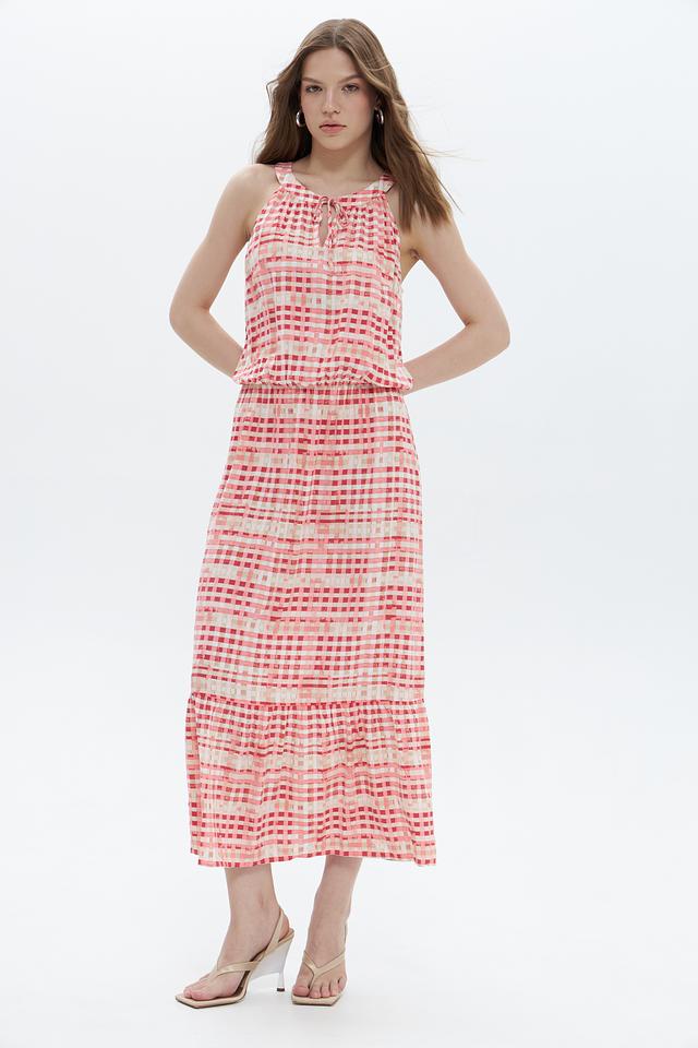 Летнее платье Tom Tailor красного цвета с ярким клетчатым принтом. Изготовлено из 100% вискозы, обеспечивающей комфорт и лёгкость в носке. Идеальный выбор для создания стильного и непринуждённого образа. Состав: вискоза 100%