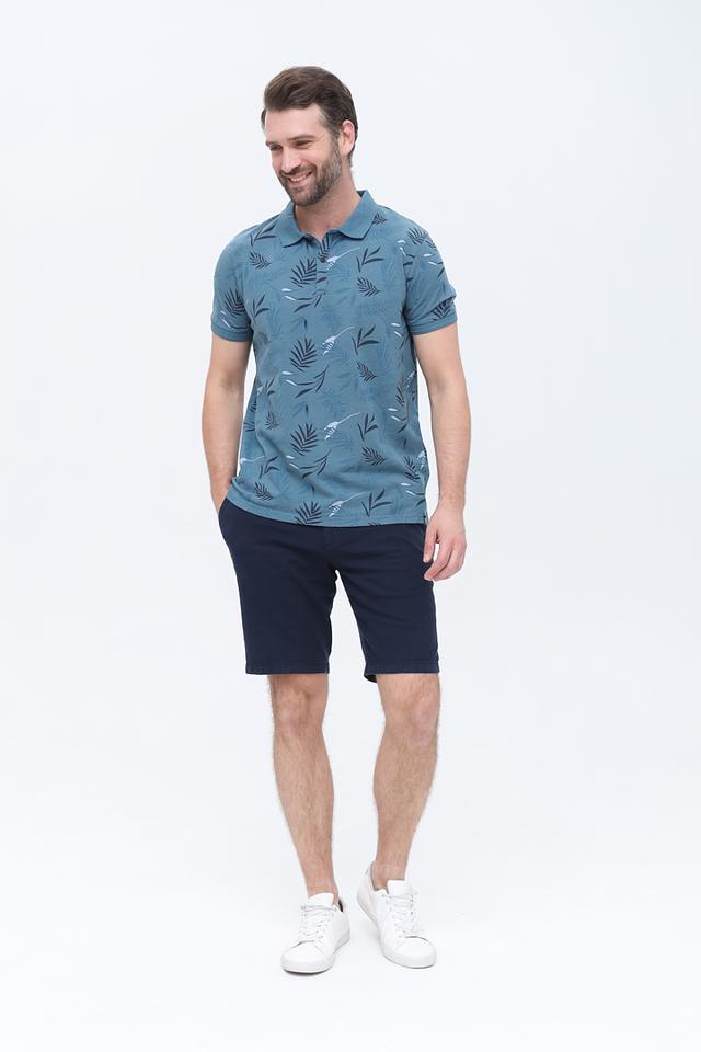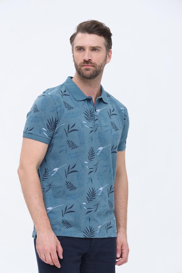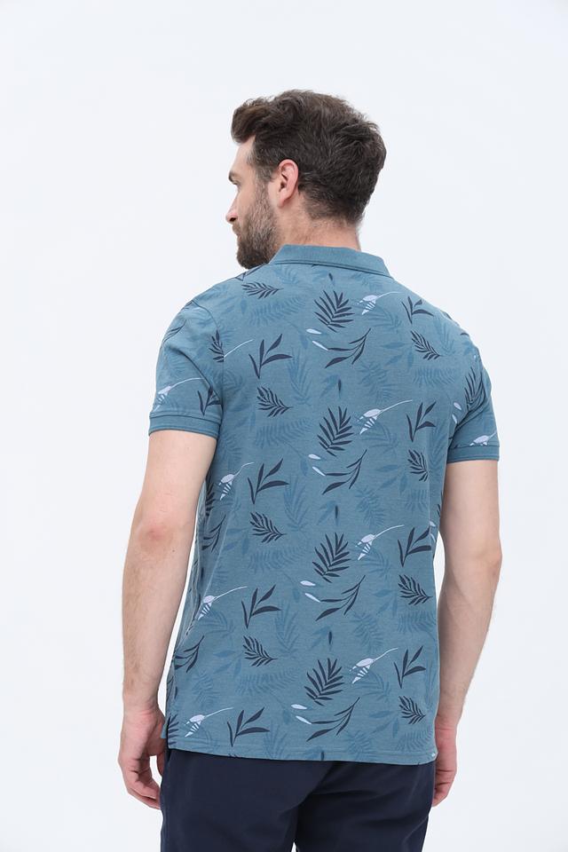 Мужское поло Basefield – это стильный и комфортный выбор для повседневной носки. Эта модель выполнена в приятном бирюзовом цвете и украшена оригинальным тропическим принтом с изображением листьев.