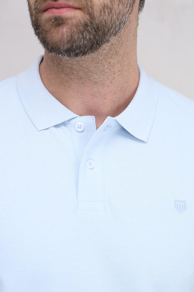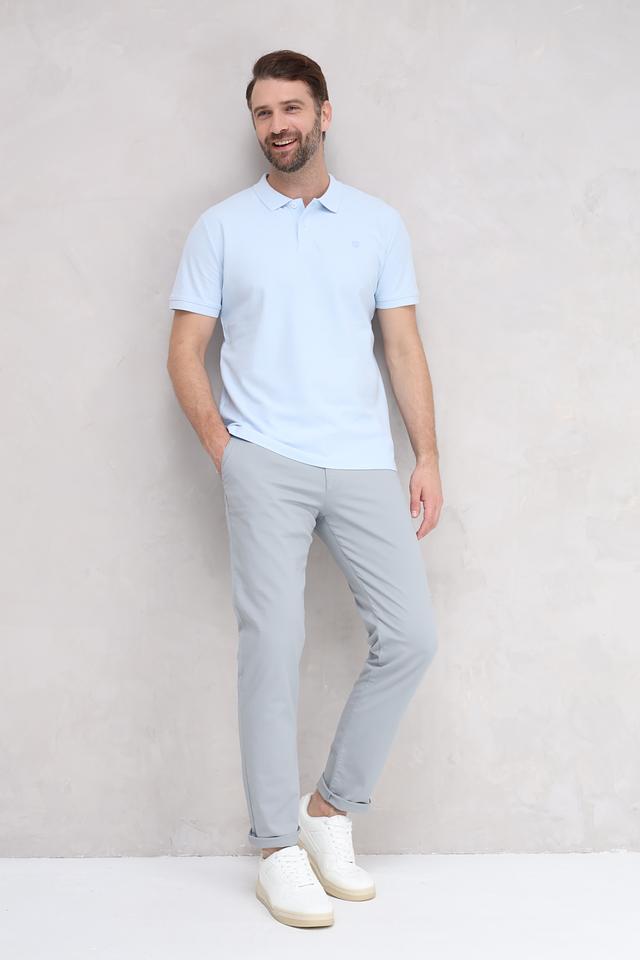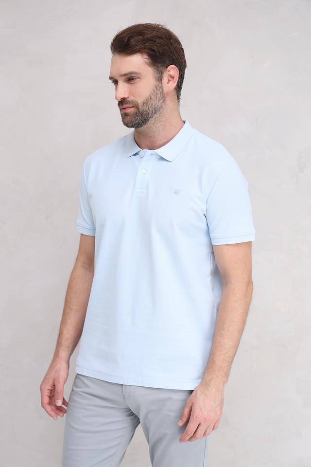 Отличительной особенностью данной модели является её нежный голубой цвет, который легко сочетается с различными элементами гардероба. Воротник поло выполнен из эластичного материала, обеспечивающего удобную посадку. На груди расположена небольшая вышивка с логотипом бренда.